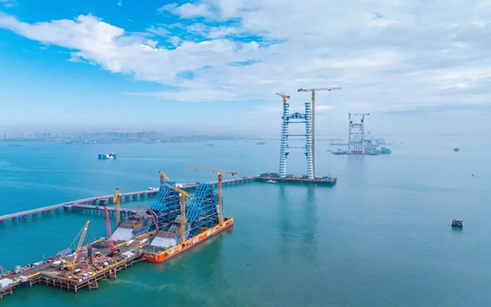 此次主塔建设任务面临 “海面精准吊装”与“复杂气象环境” 的双重考验: