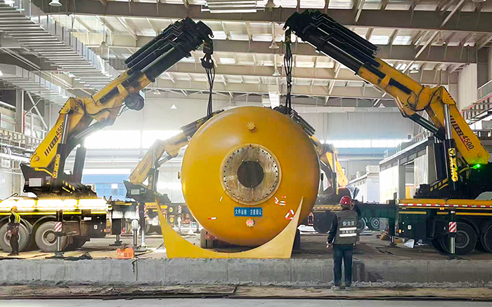 狭窄厂房内,四台星空官方网页版 SQZ4500C 折叠臂起重机如钢铁巨人并肩伫立,钢铁巨臂默契联动,稳稳托举 160t 高温炉,仅用 30 分钟便完成从起吊、转向到落位的全流程精准转运—— 这场高效硬核施工,尽显星空官方网页版折叠臂起重机的空间适应性、起重硬实力与超强作业效率。