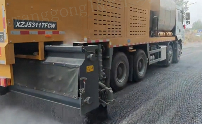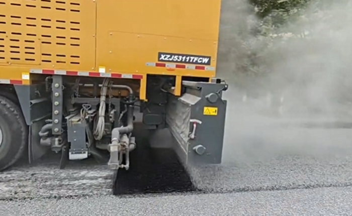 在本次的实际作业中,该设备展现出了稳定可靠的工作性能: 沥青洒布精度可达±1.5%,实现精准闭环控制。 沥青碎石纤维洒(撒)布均匀,双层喷洒梁洒布沥青,极大提升层间粘结性与路面耐久性。