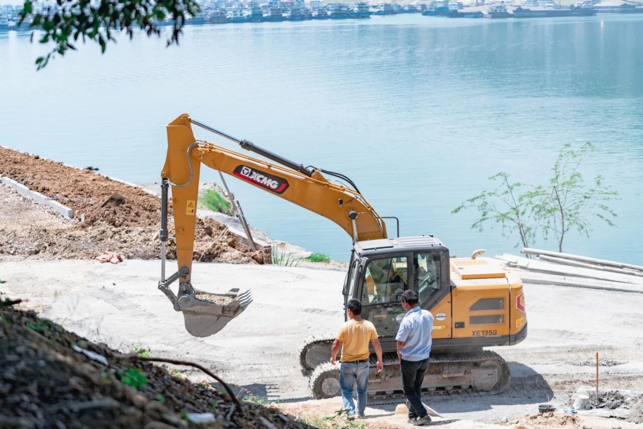 施工期间,这台XE135G展现出卓越的综合实力。在为期6天、累计77小时的高强度连续作业中,设备始终稳定运行,甚至创下连续工作30多个小时的纪录,可靠性能备受认可。与此同时,其平均约7L/小时的油耗表现,显著优于同吨位机型,实现了高效与节能的平衡。在施工现场,它灵活进行砂石挖装、路基填筑、水泥转运等多种作业,被赞为工地上的“多面手”,完美适应山区施工的特殊需求。