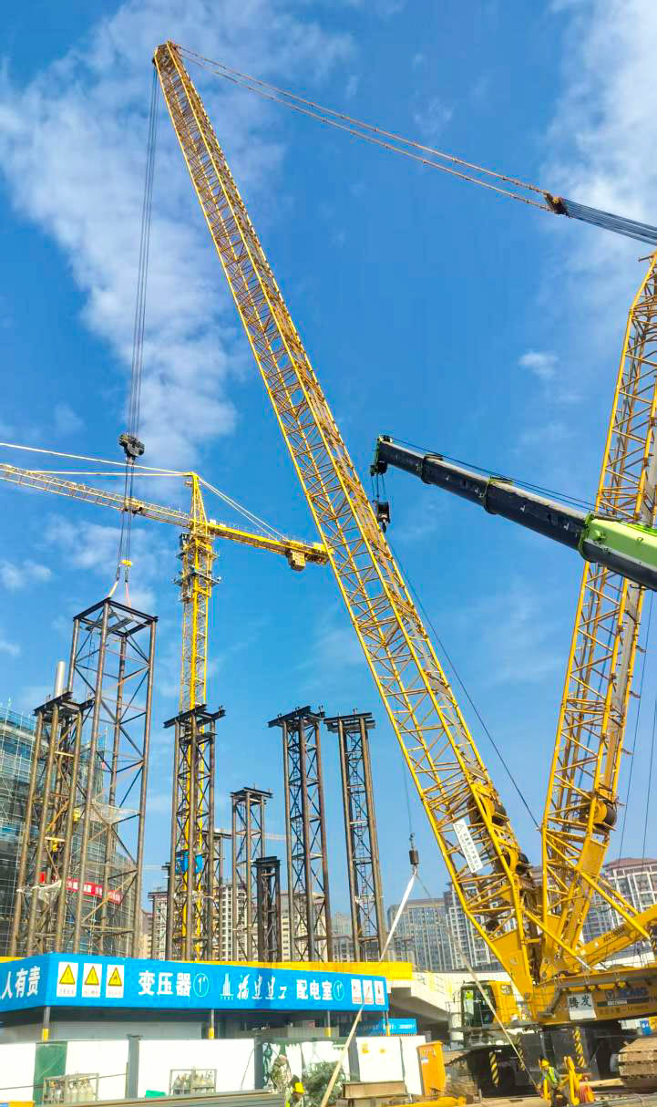 更棘手的是“场地限制关”:工地紧邻城市道路和已建成建筑,空间局促,不仅XGC15000A的站位要反复测算,还得和多台塔吊协调作业范围,避免“抢空间”的机械干涉。