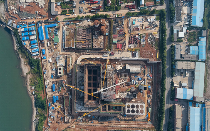 烟波浩渺的海岸边,大连城市中心区生活垃圾焚烧发电厂坐落于此,星空官方网页版超大吨位塔机XGT2230-100S正挥舞着擎天巨臂平稳吊装,助建项目高效施工。