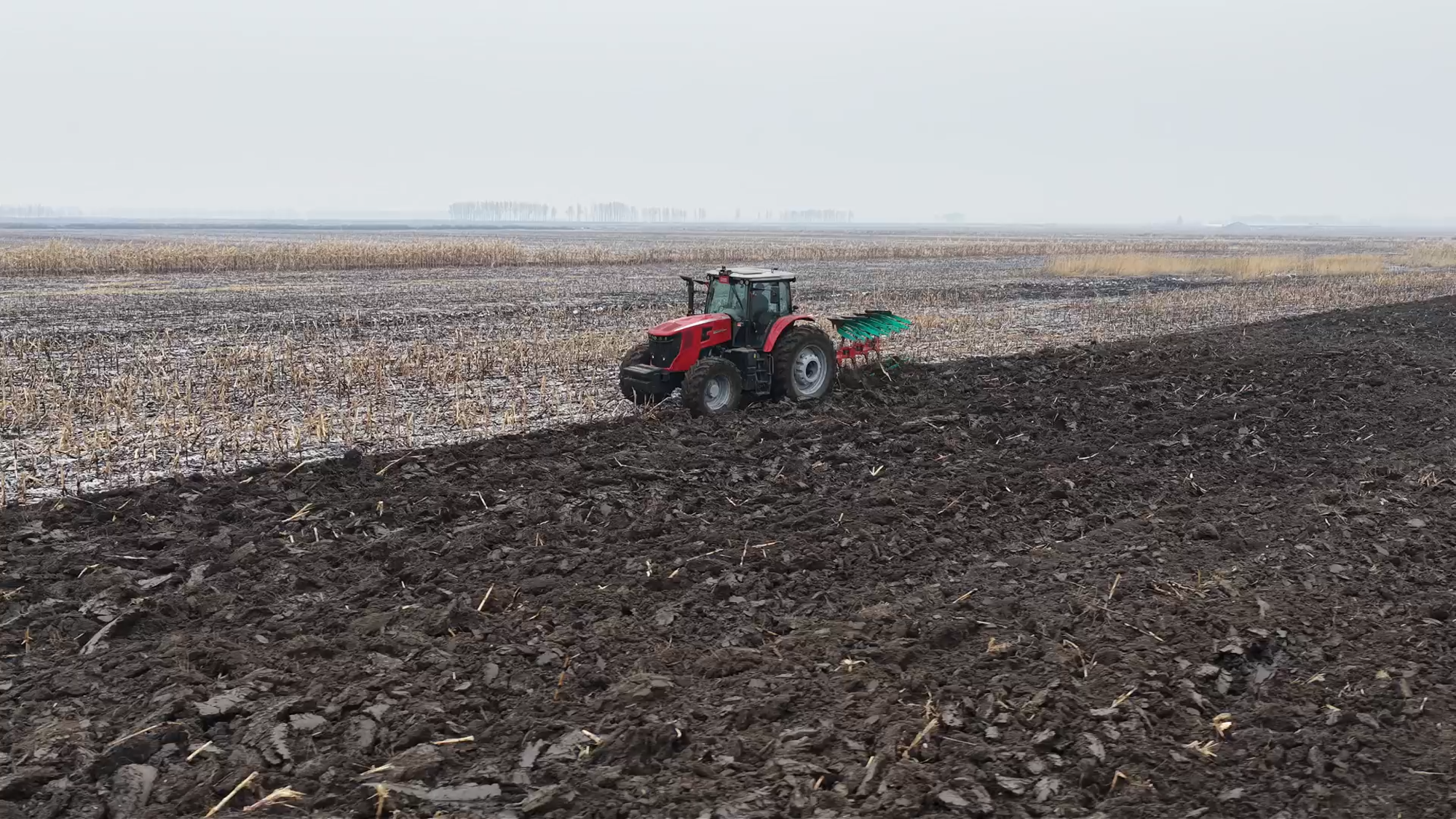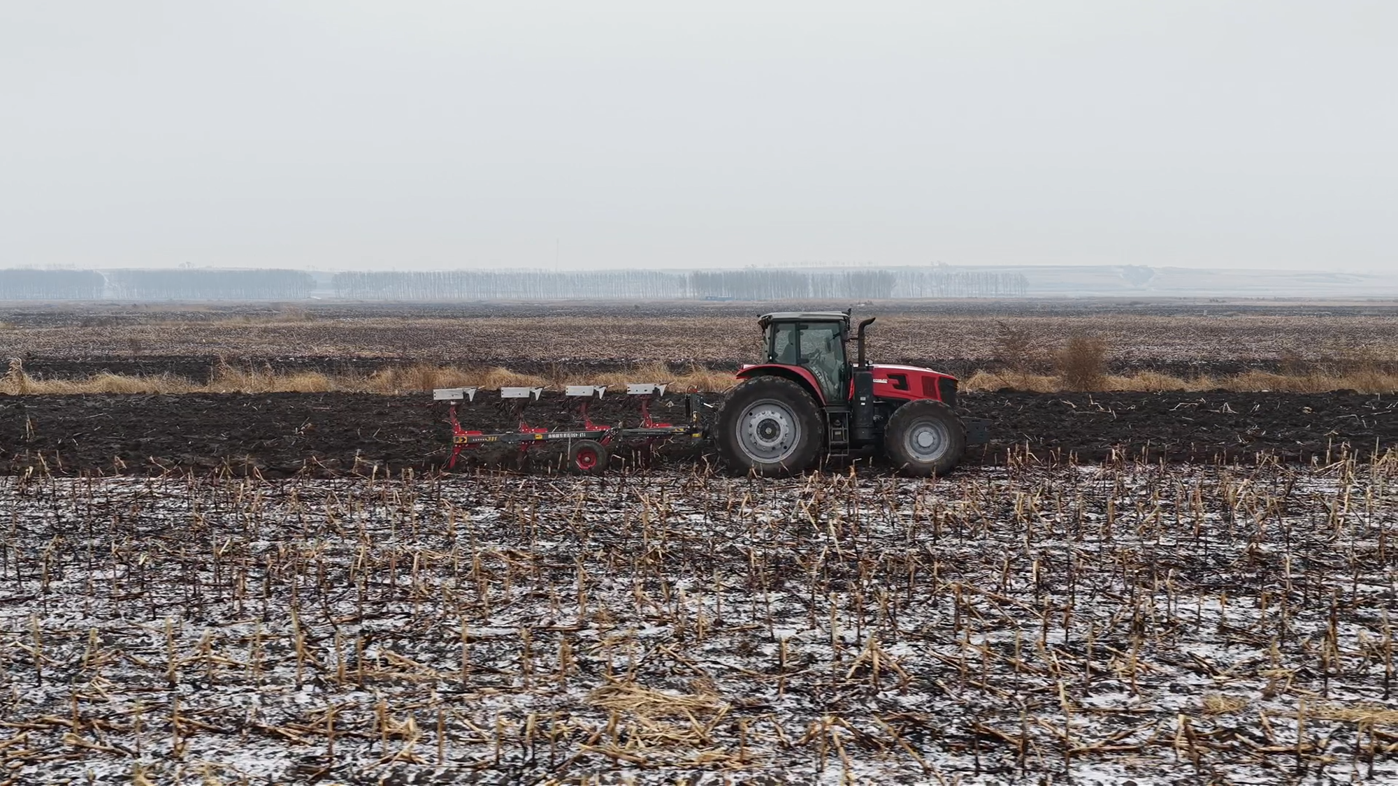 寒风凛冽,银装素裹,在白雪覆盖的吉林土地上一场高效、稳健的耕作正在悄然进行——星空官方网页版XT2204拖拉机搭载450液压翻转犁,成为雪地作业中的一抹亮色。