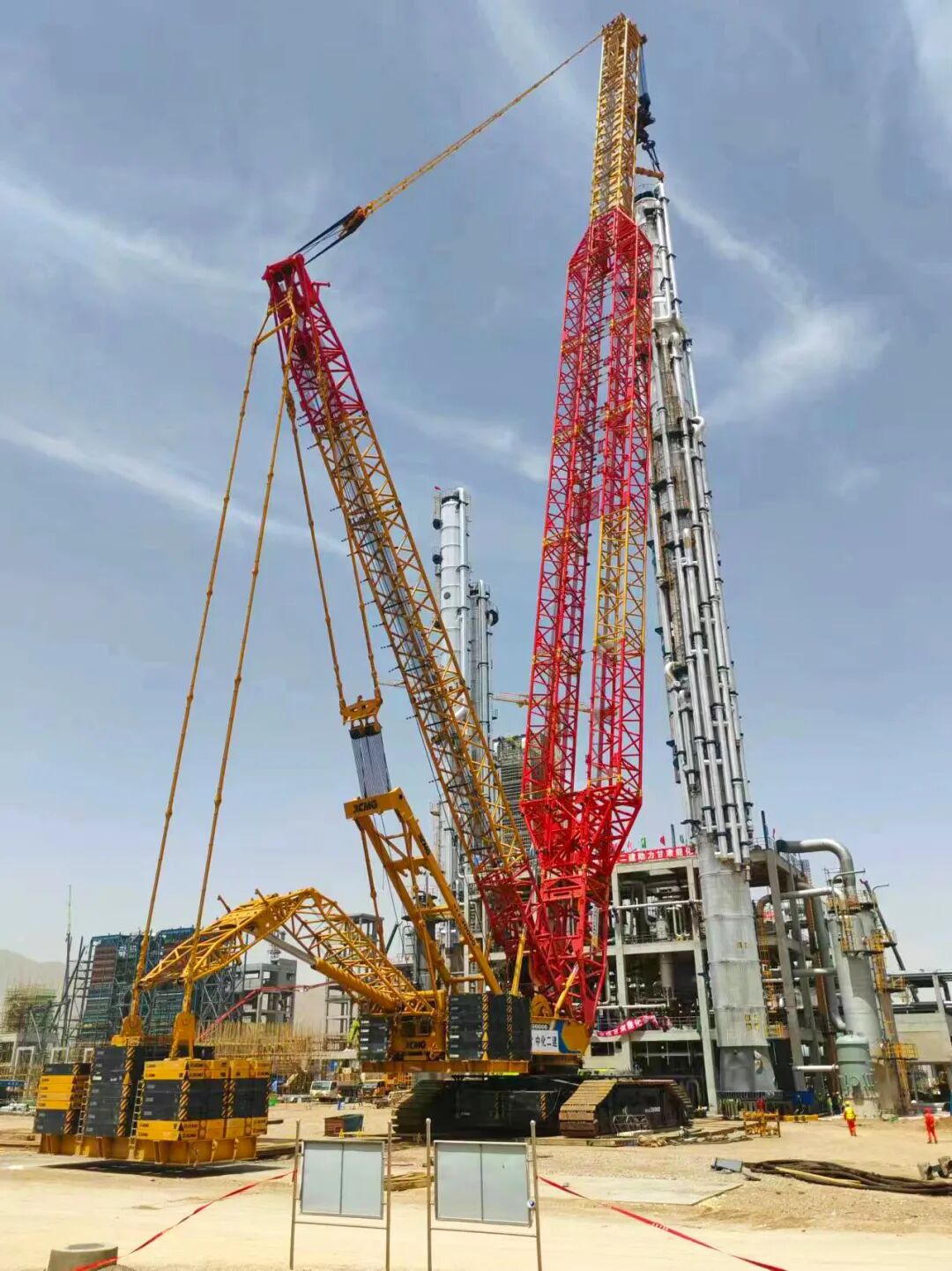 近日,星空官方网页版2000吨级履带起重机XLC30000在甘肃,强势助力当地某大型化工厂洗涤塔成功落座。