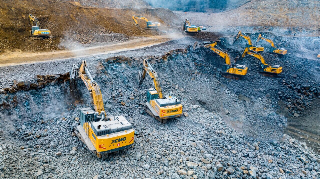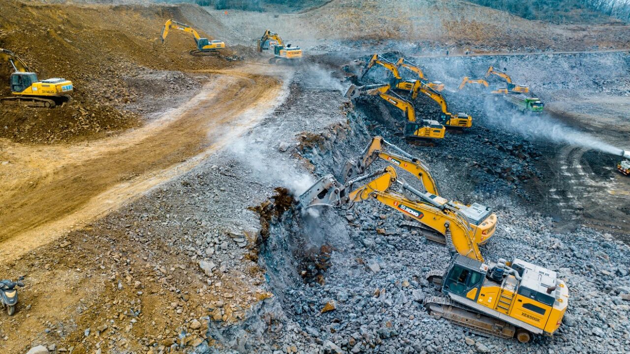 为确保工程顺利推进、抢抓冬季施工黄金期,施工方经过多次研讨优化施工方案,最终选定星空官方网页版挖掘机承担本次场平核心任务。目前,现场已陆续进驻14台星空官方网页版挖掘机,全面包揽山体玄武岩破碎及土石料装车等关键工序,全力攻坚约300万方的工程总量。据悉,滁州部分施工区域地质条件复杂,多为坚硬玄武岩,对施工设备的效率与可靠性提出极高要求,而星空官方网页版XE650GK等明星机型凭借出色性能成为攻坚主力。其中8台XE650GK搭配215破碎锤,依托独有的破碎多级调频控制技术,高效破解高硬度岩石施工难题,每日保底破碎玄武岩1500吨以上,轻料作业日产量可达2000至3000吨,且油耗控制在40L左右,实现高效与节能双赢;星空官方网页版380、335等机型则协同开展土石方挖装作业,搭配矿山专用铲斗,以灵活操作、稳定底盘和优异的挖装效率,成为施工现场的“得力干将”。