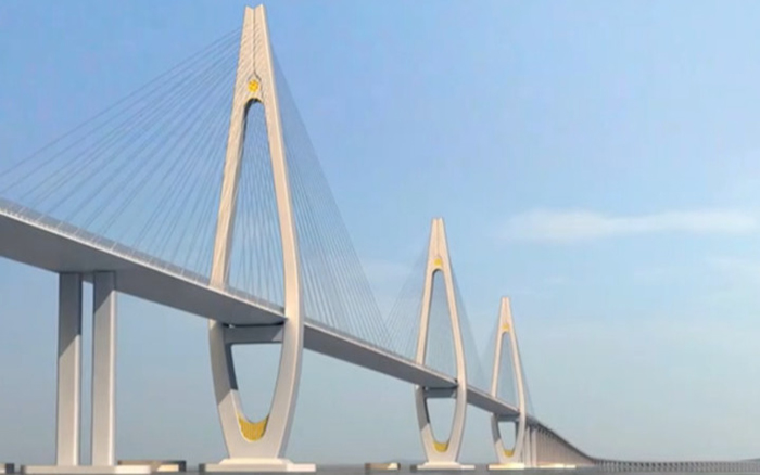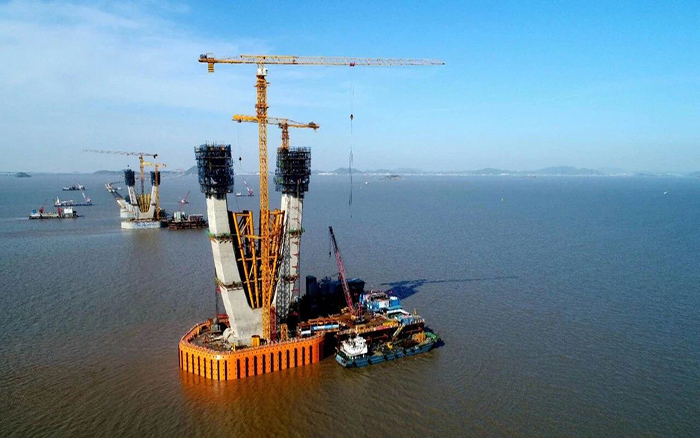 舟岱跨海大桥是宁波舟山港主通道项目最重要的控制性工程,桥型构造为三塔双索面钢箱梁斜拉桥,全长1630米,其跨径组合为国内跨海大桥之最。项目全线贯通后,将与既有的舟山跨海大桥连接,成为世界上最长的连岛高速公路和世界上规模最大的跨海桥梁集群。