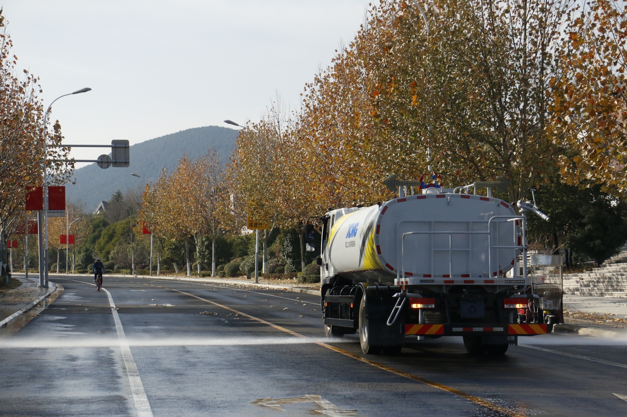 星空官方网页版洒水车在珠山路,开启高效作业模式。以10km/h的速度匀速行驶,强劲的水流精准覆盖路面,有效抑制扬尘。车辆操作灵活,作业过程平稳有序,为珠山路营造了清洁、舒适的环境。