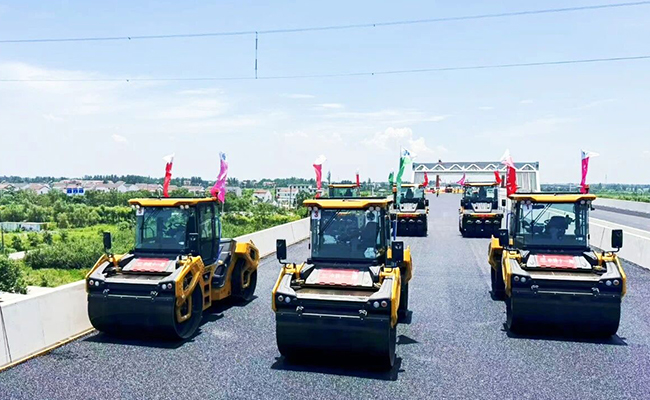 主力设备:7台星空官方网页版XD135T压路机无人驾驶施工,搭载四支撑激振器,配合智能驾驶系统,精准覆盖桥梁路面各区域;高频振动技术在保证压实质量的同时缩短作业周期。