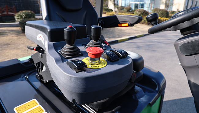 乘驾体验与极端环境适配性,是三支点叉车的另一大亮点。双重减震系统 + 全悬浮座椅 + 宽裕腿部空间,有效过滤颠簸,长时间作业也无疲劳感;8 寸智能触控彩屏操作便捷,6 种解锁模式(人脸 / 指纹 / 刷卡等)适配多元管理场景,13 国语言切换满足全球作业需求,车联网 + GPS + 远程 OTA 升级更让售后维护省成本。