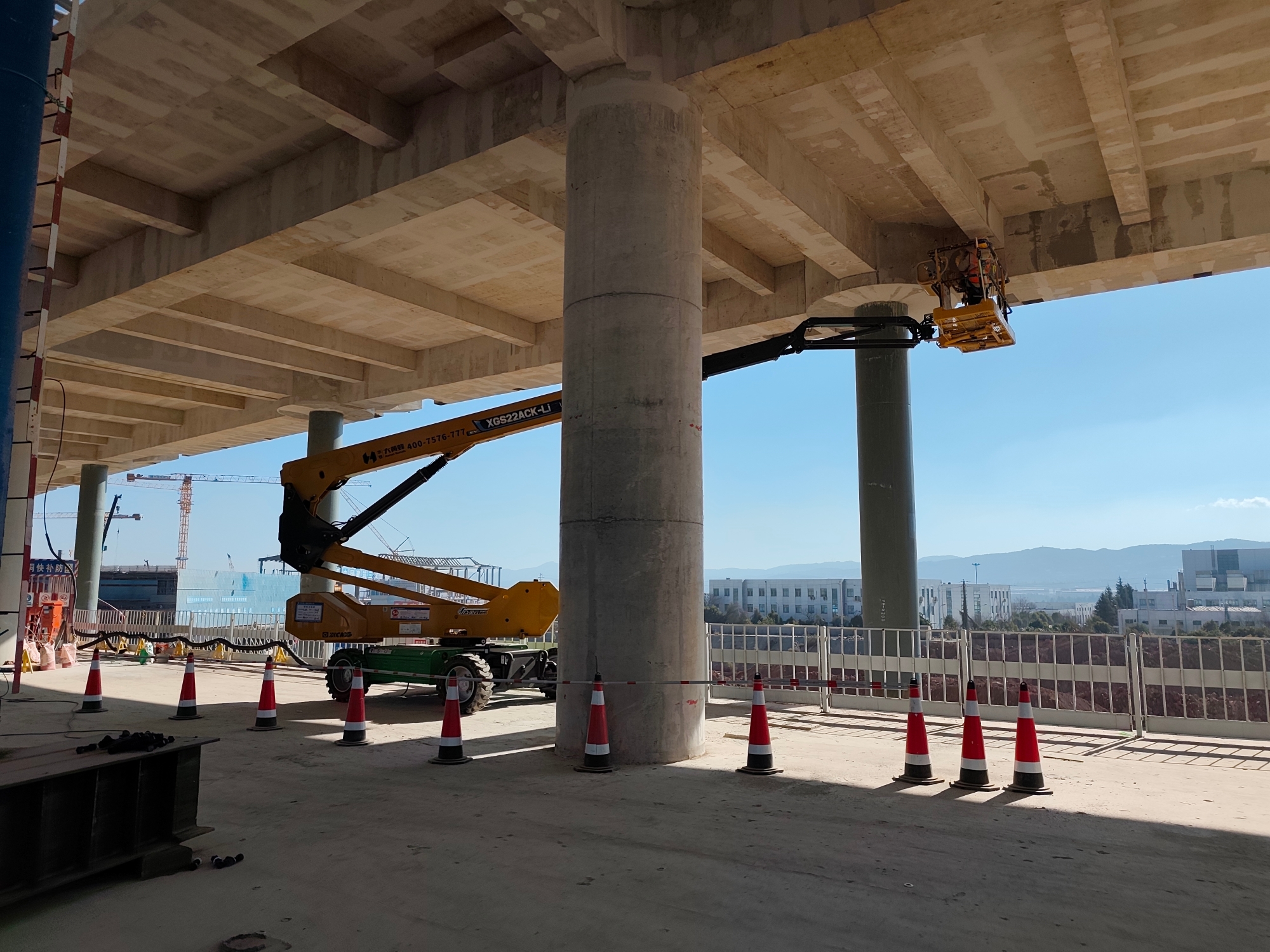 T2 航站楼采用大跨度异形曲面结构,作业空间复杂、精度要求高。星空官方网页版 XGS22ACK-Li 最大作业高度达 22.9 米,最大作业幅度 15.4 米,可轻松覆盖航站楼主体施工区域;平台额定载荷最高 460kg,满足多人同步作业与工具材料搭载需求,大幅提升施工效率。